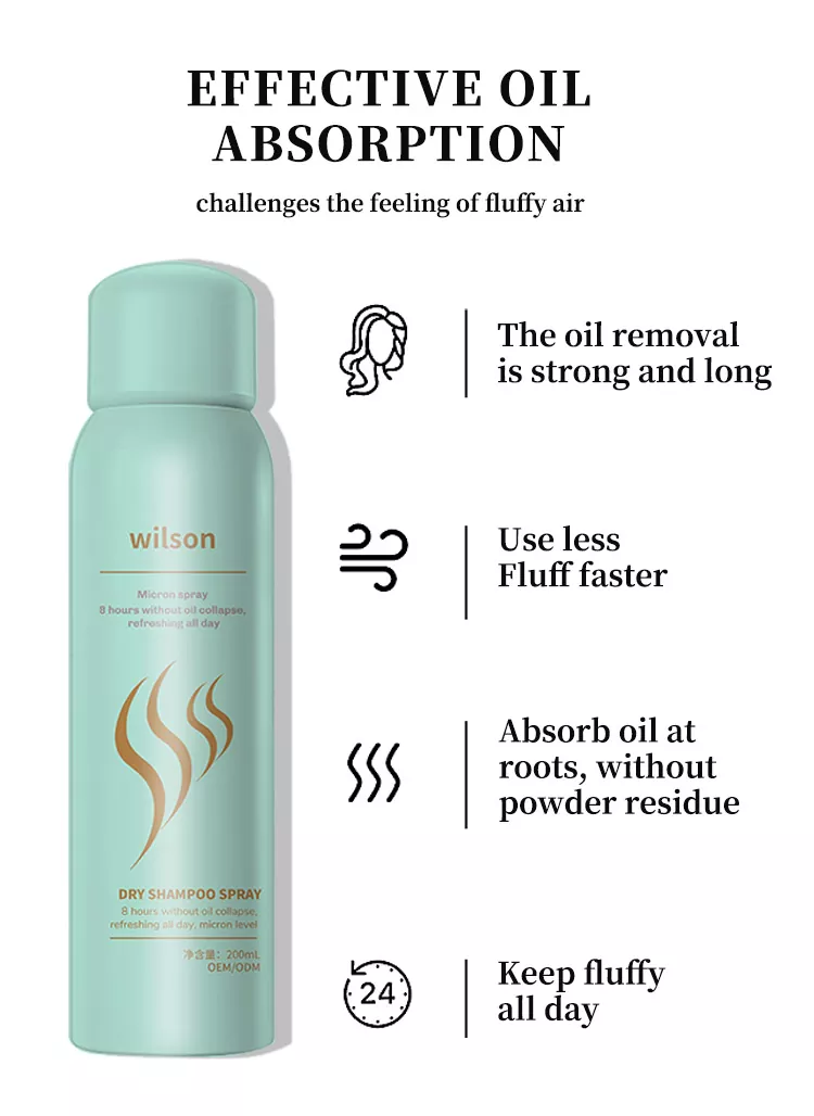 El spray de champú seco y fresco Wilson Instant sin lavado ha rescatado a muchos cabezales de aceite que se apagan temporalmente y no pueden lavar el problema del cabello, la materia prima principal es el almidón de arroz, el almidón tiene una estructura porosa, capacidad de adsorción, es una materia prima de adsorción higroscópica común, puede absorber eficazmente el exceso de aceite en el cuero cabelludo y limpiar la suciedad del cabello, rociar y agregar algunos componentes tensioactivos y electrostáticos para facilitar la eliminación de productos del cabello. Siéntete fresco y natural después de su uso.