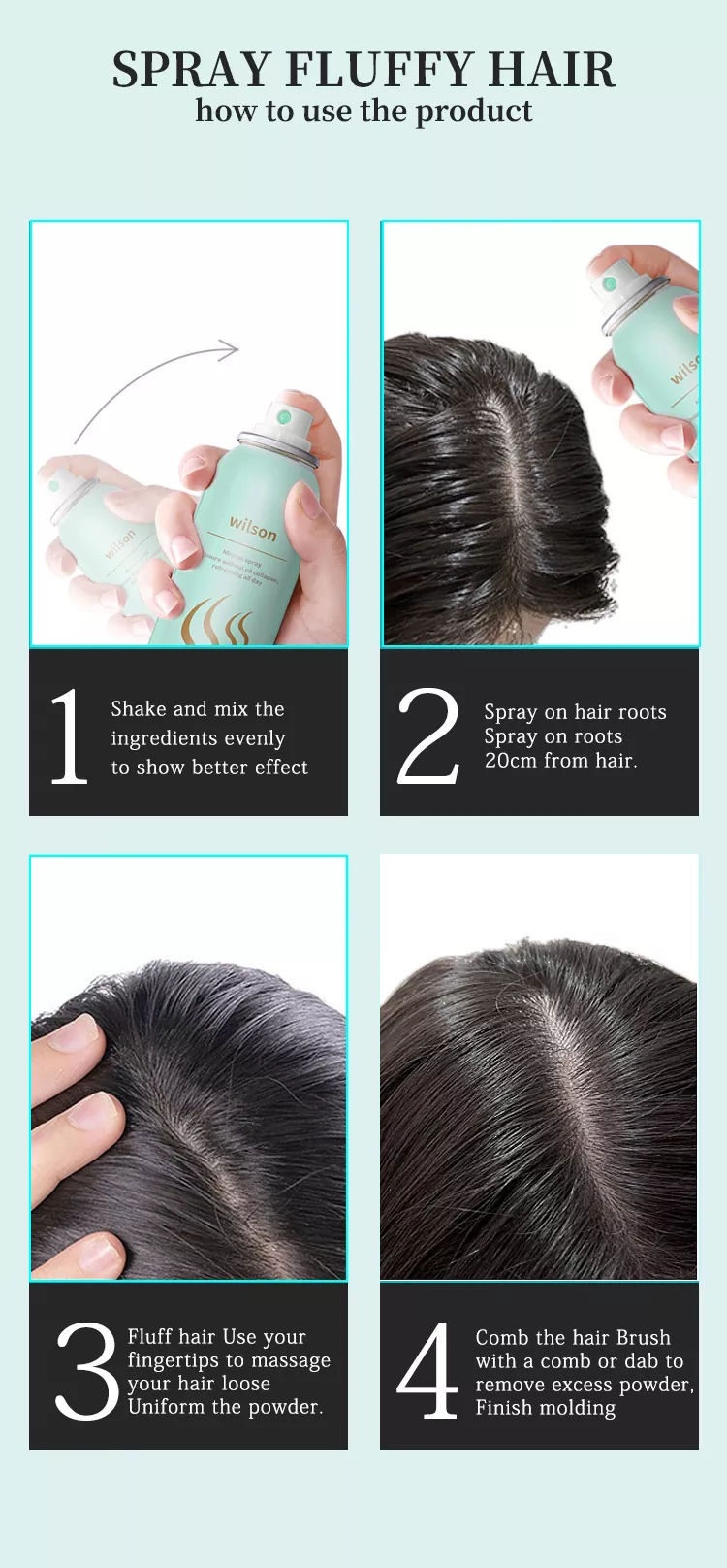 El champú en aerosol seco y fresco Wilson Instant no-wash es un conveniente limpiador para el cabello que limpia fácilmente el cabello cuando no tienes tiempo para lavarlo, a la vez que brinda un aroma refrescante y agradable. El champú no requiere agua y es fácil de usar. Simplemente rocíe sobre las raíces de su cabello, masajee suavemente y limpie con una toalla limpia no solo para eliminar la grasa y el olor, sino también para realzar el volumen de su cabello.