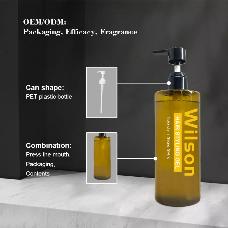 Nuestro gel para peinar el cabello ultra suave y sin costuras Wilson para hombres admite formulaciones personalizadas que se adaptan a su tipo de cabello (suave, áspero, rizado, liso) y sus necesidades de peinado (larga duración, volumen natural, textura mate). Aroma personalizado: desde cítricos frescos hasta madera tranquila, elija el aroma que desee para que cada look esté lleno de alegría. Embalaje exclusivo: imprima su nombre o mensaje especial, cree un estilo único para usted, regalos para usted usar.