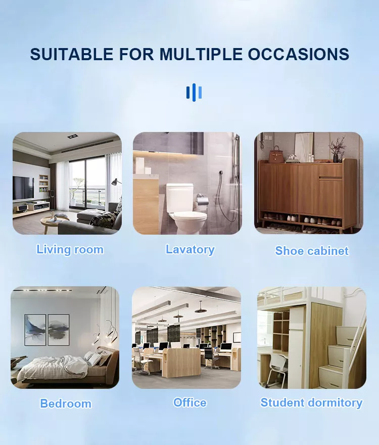 es un producto diseñado específicamente para mejorar la calidad del aire interior. Puede mejorar el olor interior, el formaldehído, las PM2.5 y otras sustancias nocivas, para que respires aire más puro y fresco. Los ambientadores son adecuados para los siguientes escenarios: