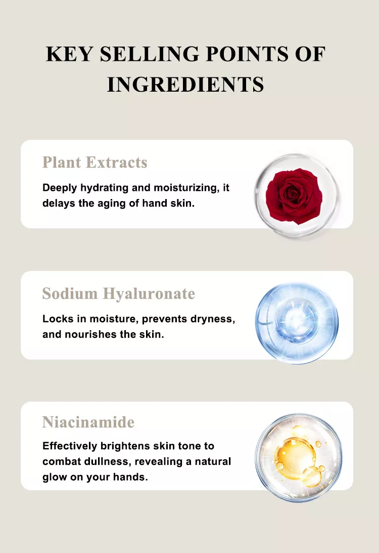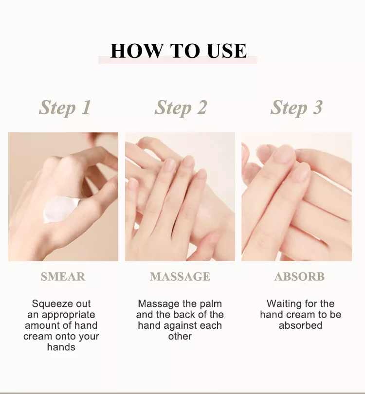 Después de usar la Crema de manos de alivio inmediato de absorción rápida, la piel se vuelve más delicada, las líneas finas se reducen y aumenta el contenido de agua de la piel. La crema de manos es adecuada para diversas ocasiones de la vida diaria, especialmente para quienes se lavan las manos con frecuencia, entran en contacto con agentes de limpieza o están expuestos a ambientes secos y fríos. Ya sea para el cuidado en el hogar, en la oficina o para actividades al aire libre, la aplicación oportuna de una crema para manos protege eficazmente sus manos y mantiene una piel sana y joven.