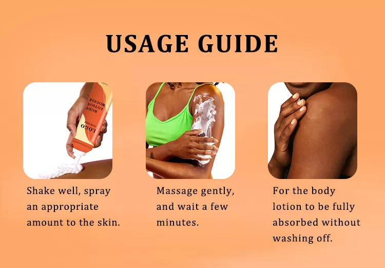 Wilson Quick Absortion Lightweight Texture Body Lotion Mousse es un favorito de los consumidores con su textura espumosa liviana, rápida absorción de un segundo de leche y una sensación de humectación profunda y no pegajosa que redefine la experiencia de humectación corporal, ideal para la eficiencia y el disfrute en nuestras vidas modernas y ocupadas. Nuestra fórmula admite el uso corporal tanto húmedo como seco, pero es aún más efectiva cuando se usa ligeramente húmeda después de la ducha para retener la humedad. Aquí se explica cómo usarlo: